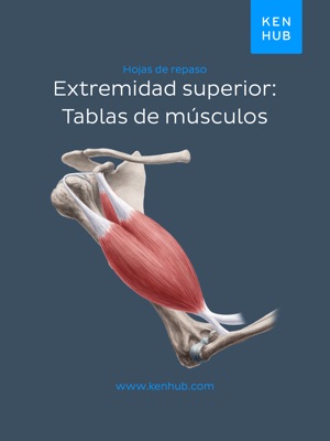 Cada tabla reúne los músculos de una región específica y los detalla en los grupos que componen dicha región, haciendo que tu revisión sea mucho más fácil. Por ejemplo, la extremidad superior se divide en músculos del brazo y hombro, antebrazo y mano. Al lado de cada de cada músculo, podrás encontrar su(s) origen(es), inserción(es), inervación(es) y función(es).